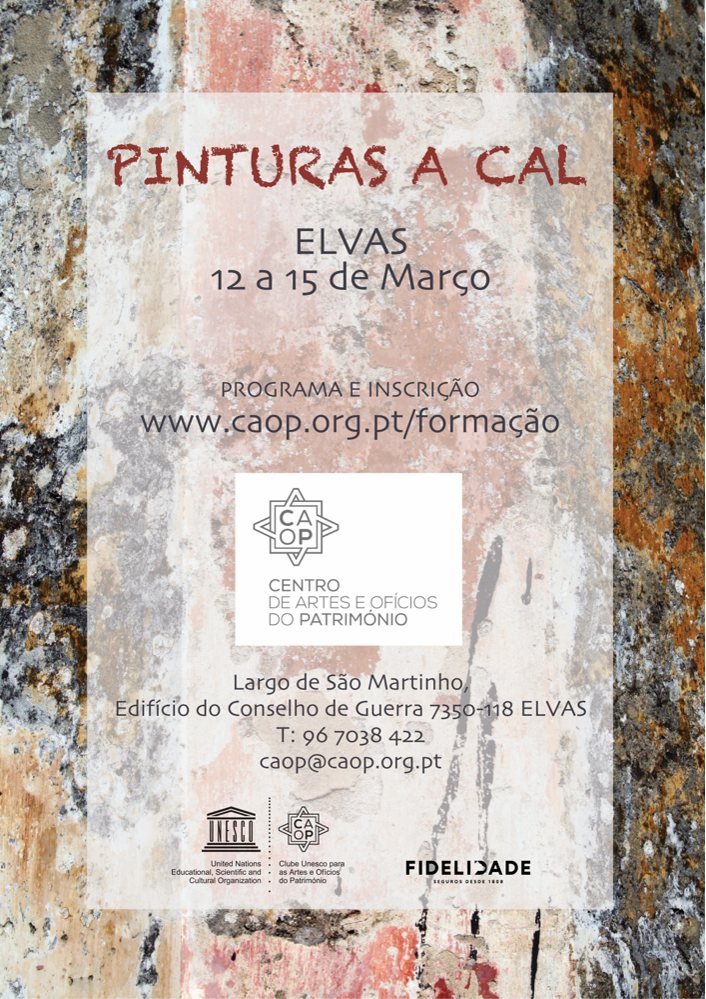 De 12 a 15 de Março de 2019 realizar-se-á em Elvas o curso Pinturas a Cal, organizado pelo Centro de Artes e Ofícios do Património. Para mais informações, contacte o CAOP.